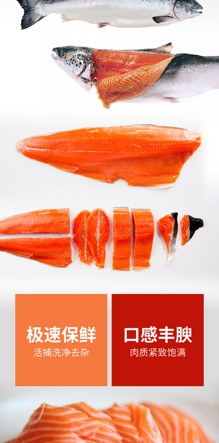 冰鲜三文鱼 新鲜海鲜水产 抄码称重 5-7kg/条